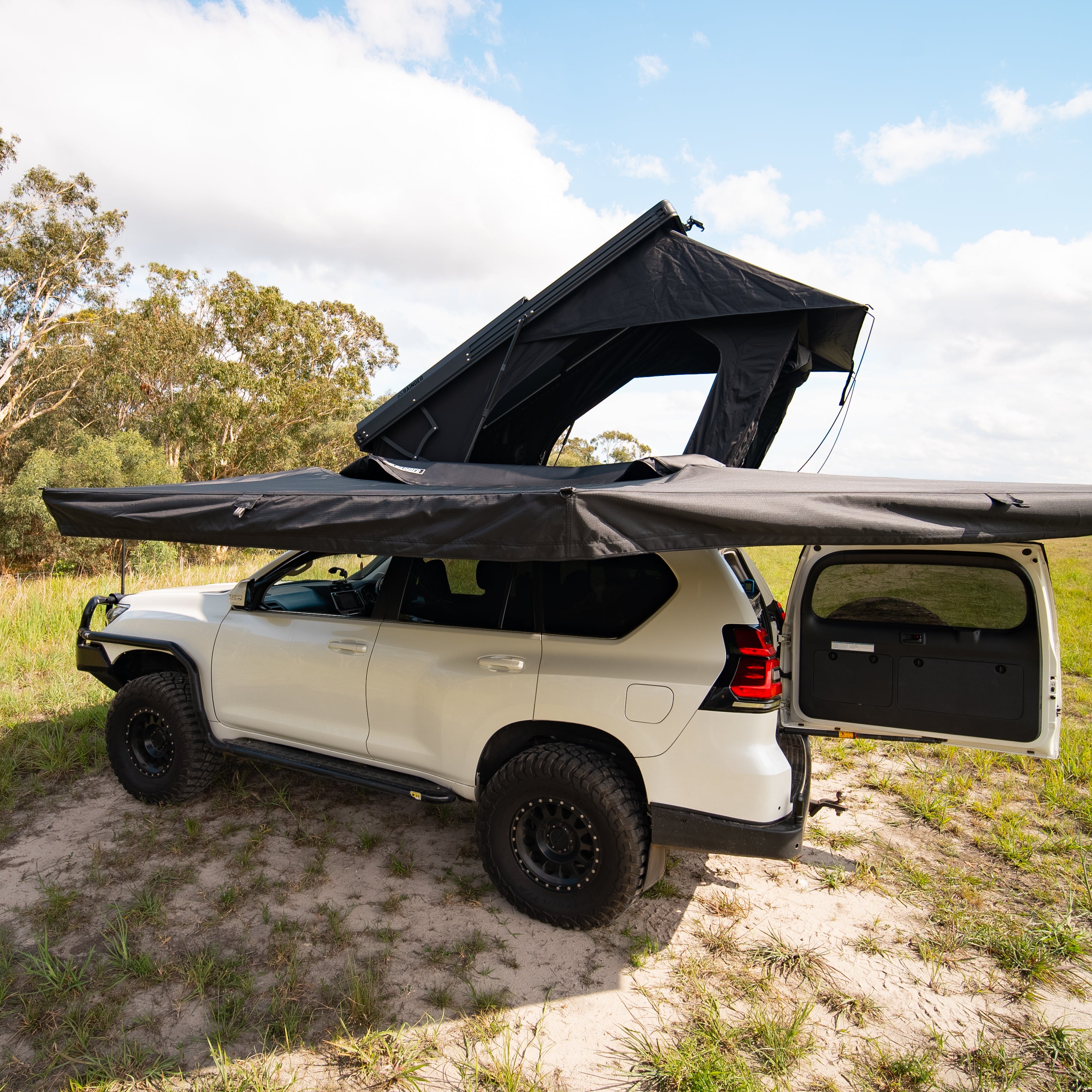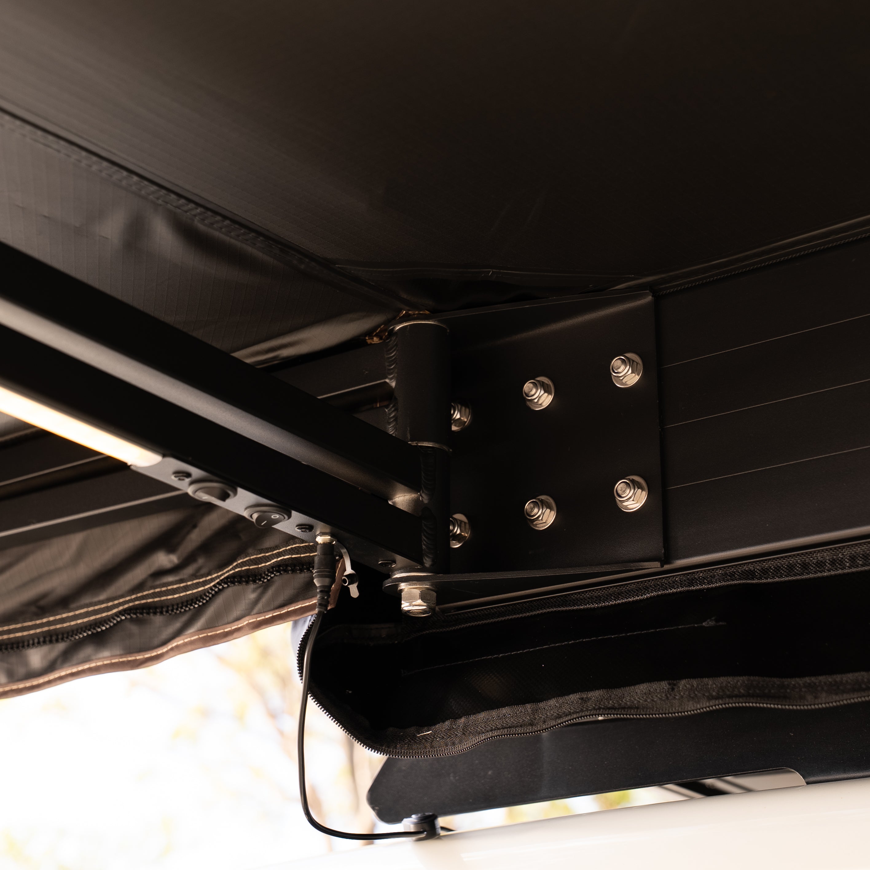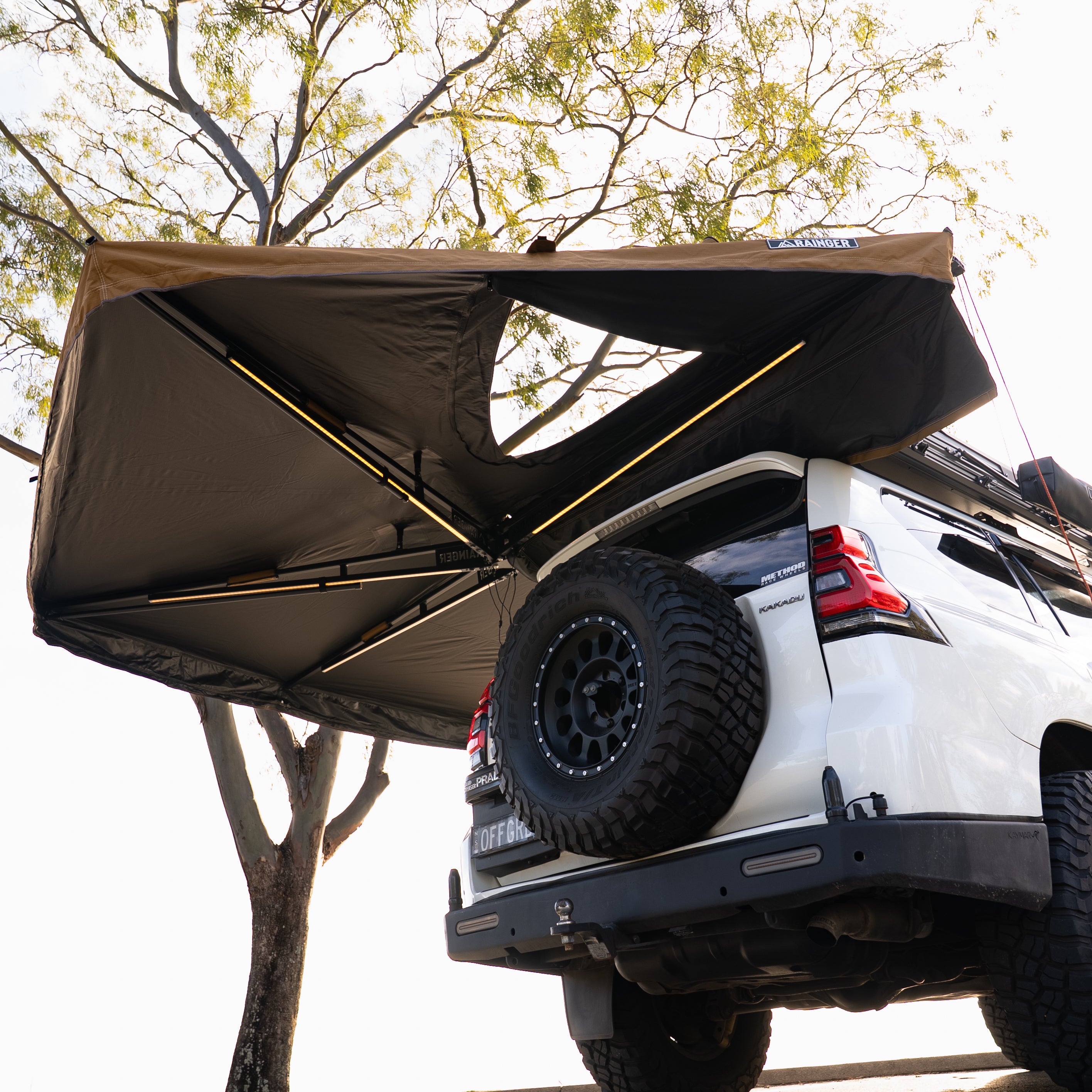 Some Rack or Canopy manufacturers make great setup specific awning brackets, So do some 3rd party brands, Just like we do, to mount perfectly to the side of our own Revo X Roof Top Tents.