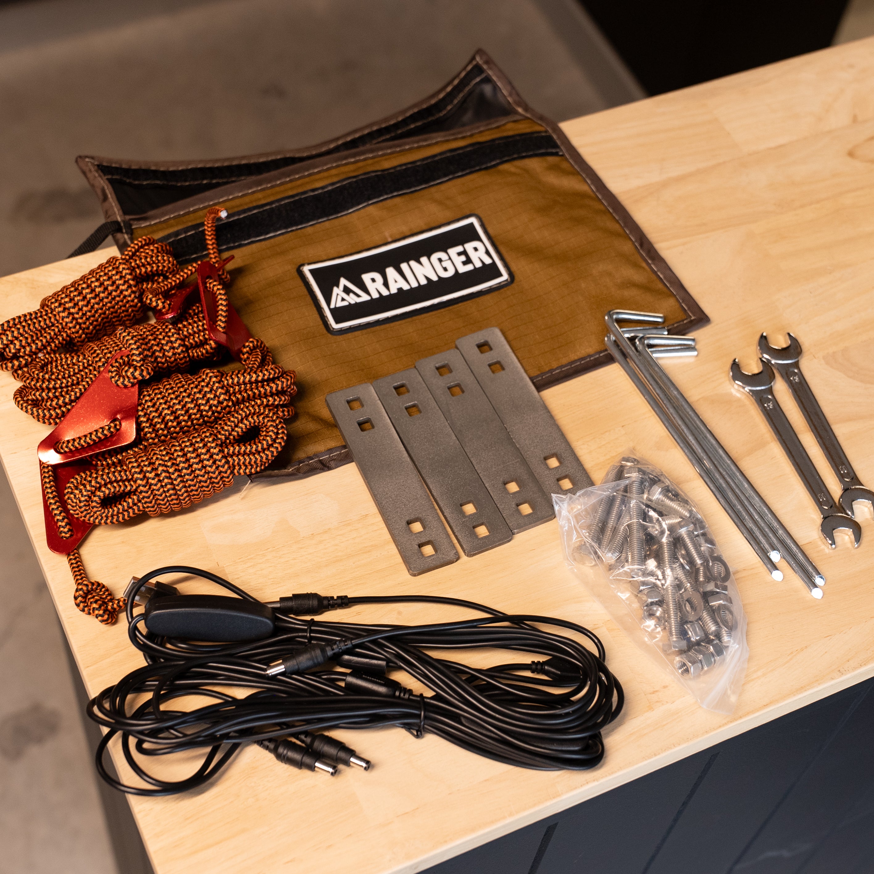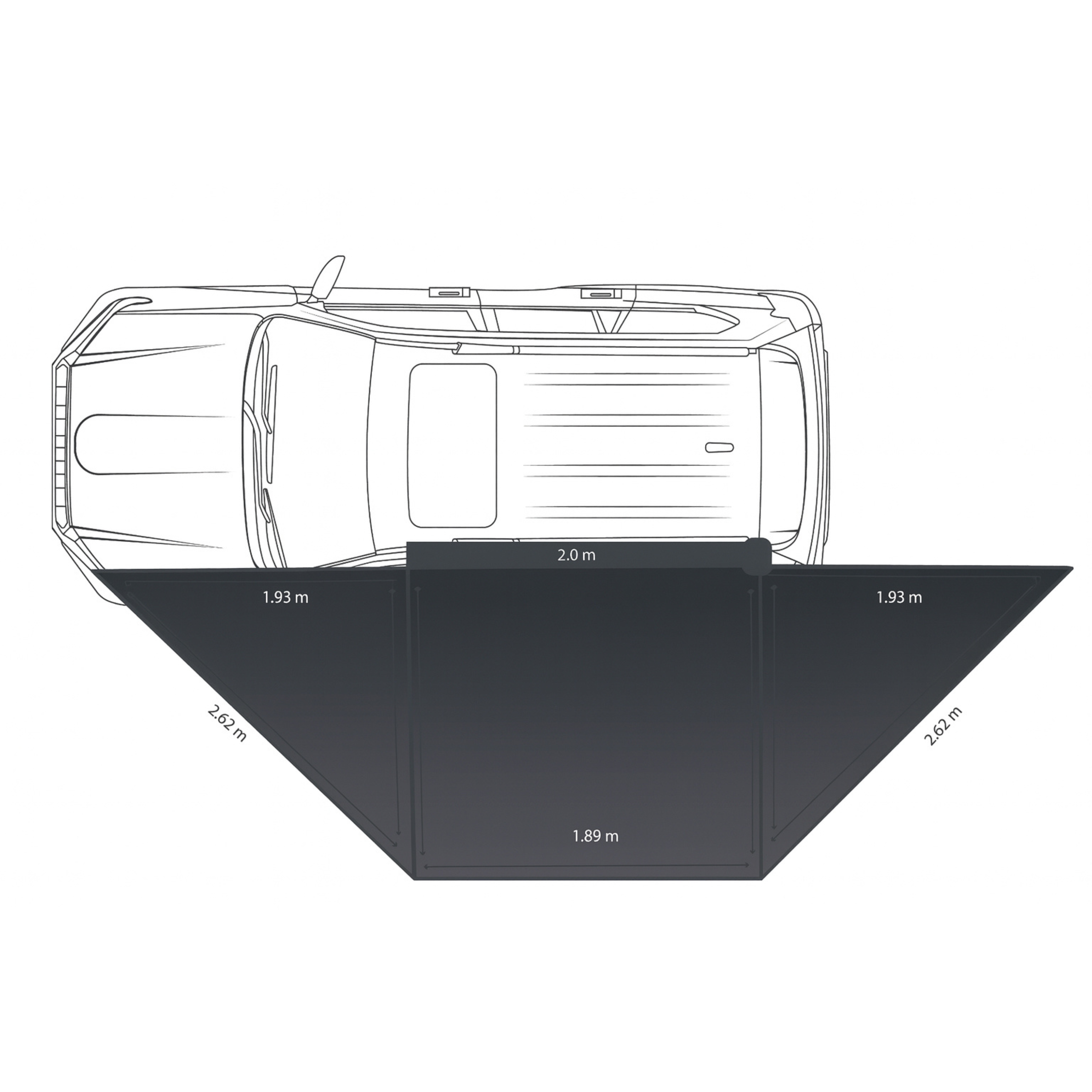 An ultra-quick, 4-arm freestanding 180° awning that deploys in seconds. Shade by day, light by night—the Rainger 180 throws serious cover down the side and rear of your rig, then lights up camp with LEDs on all four arms. Built from premium 280 GSM blackout ripstop canvas, finished in Desert Tan with coffee-brown nylon edging or Midnight Black for a stealth look. At only ~23 kg, it’s tough, tidy, and touring-ready.