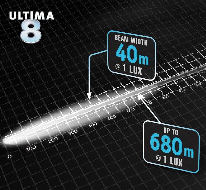 • Ultra Wide Flood — SKU: 71715BK — ~12,680 lm (pair); ~70 m width @ 300 m