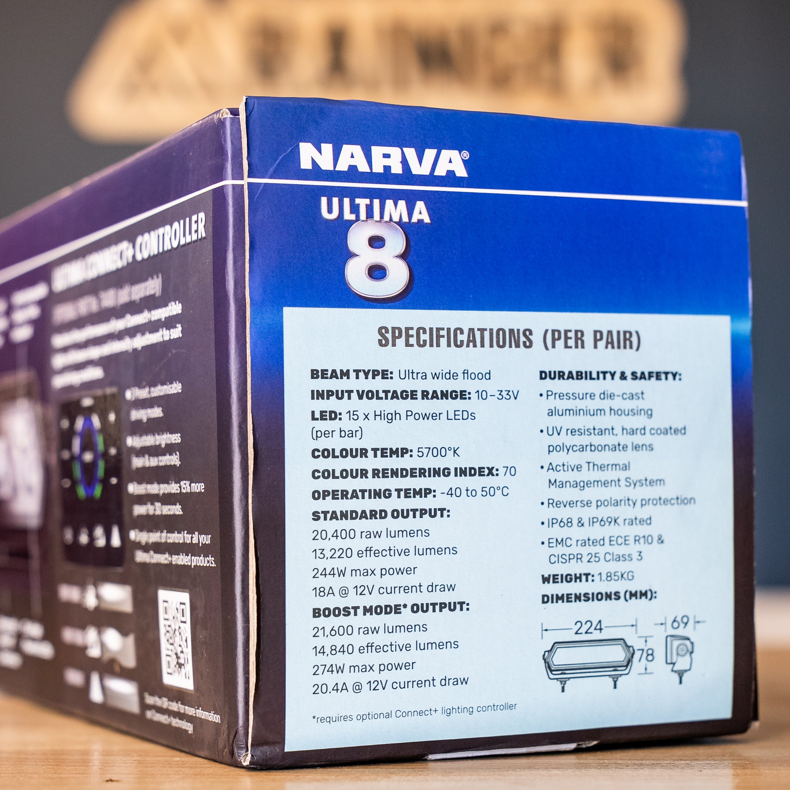 Narva Compact 8" twin bars engineered for Aussie conditions with IP68/IP69K sealing, 5700K white light and a 10-year warranty. Use variants to choose the beam pattern: Ultra Wide Flood for maximum verge coverage, or Combo (Long & Wide Hybrid) for balanced distance and width. Hard-coated lenses, die-cast housings, anti-vibration mounts, and Connect+ ready.