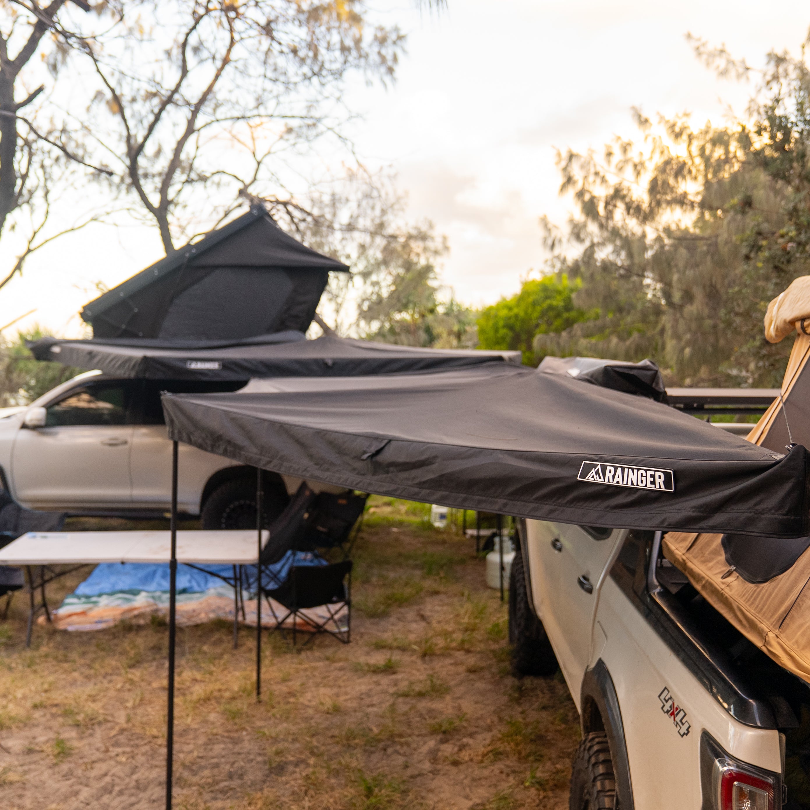If you want shade down the side and around the rear, check out the Rainger Duo 2.5M 270° Awning for full-size vehicles or the 1.7M Jimny/SWB model for compact rigs. Same Duo platform, same build quality, just a different coverage layout.