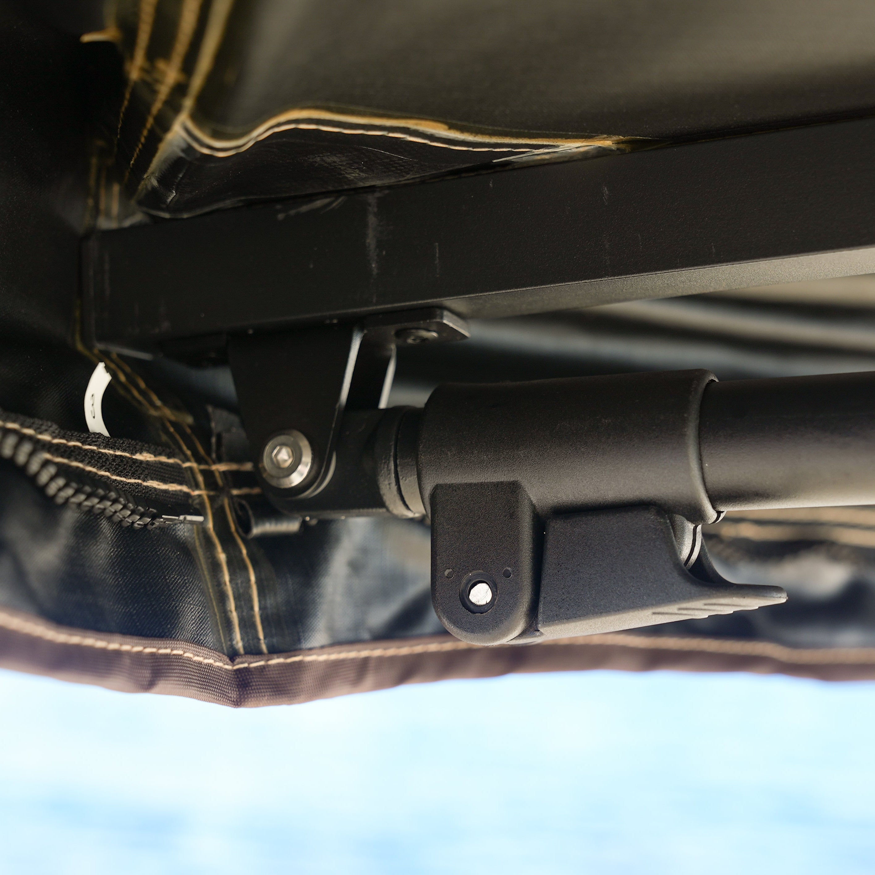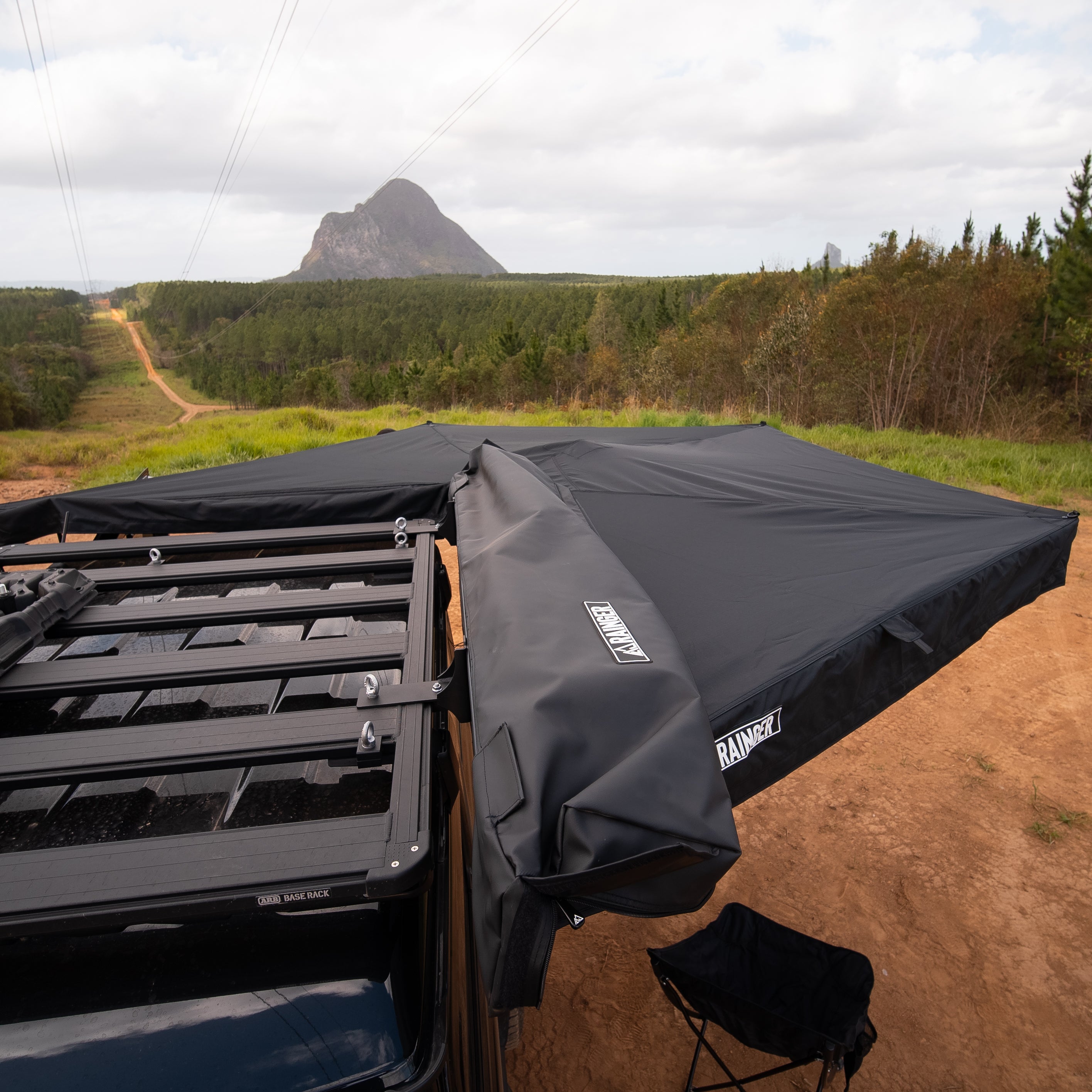Some Rack or Canopy manufacturers make great setup specific awning brackets, so do some 3rd party brands, just like we do, to mount perfectly to the side of our own Revo X Roof Top Tents.