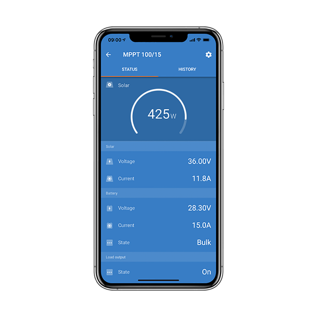 • Bluetooth built-in (VictronConnect app) + VE.Direct port